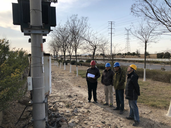 (圖為安全管理部檢查臺(tái)變和配電箱)