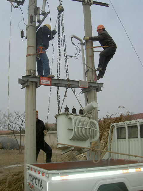 春節(jié)前夕,徐圩供電所加大電力設(shè)備和線路巡視維護力度,將預(yù)防大面積停電事故作為節(jié)前安全生產(chǎn)的首要任務(wù)。該所認真組織人員深入轄區(qū)查找線路和設(shè)備存在的安全隱患,提前作好安排和準(zhǔn)備,2月5日發(fā)現(xiàn)辛高圩地區(qū)99#變壓器節(jié)日期間容量可能不夠,便及時調(diào)換了變壓器,確保用電安全。(圖為該所職工在調(diào)換變壓器)(馬德松)