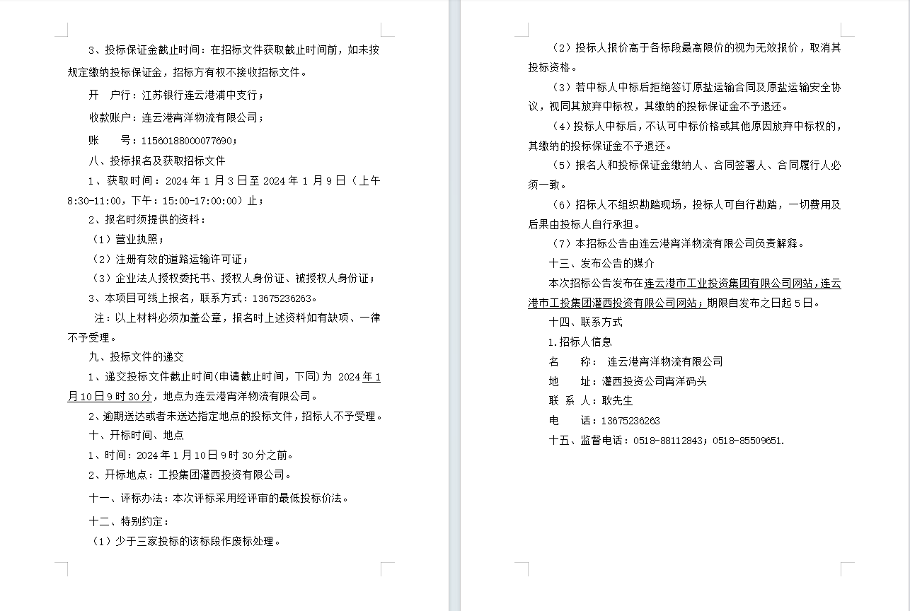 連云港宵洋物流有限公司原鹽車輛 異地轉(zhuǎn)運(yùn)業(yè)務(wù)招標(biāo)公告(二次)