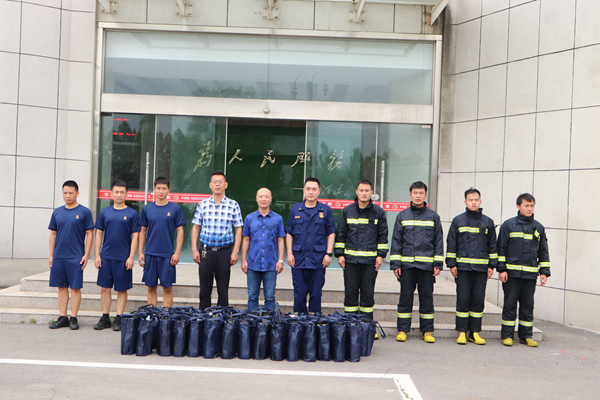 “八一”建軍節(jié)前夕,公司總經(jīng)理韓立新、工會主席袁忠一行前往開發(fā)區(qū)消防大隊進行慰問,為消防官兵帶去洗護用品等慰問品。