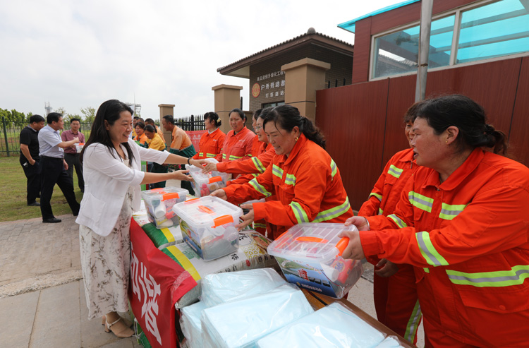 ????? 8月4日上午,市總工會(huì)副主席王悅到連云港綠化工程公司基層班組開展“送安全、送清涼、送法律”活動(dòng),走訪慰問堅(jiān)守在高溫作業(yè)現(xiàn)場(chǎng)的市政養(yǎng)護(hù)職工,在送去防暑藥品、涼茶、礦泉水、綠豆、白糖、毛巾等防暑降溫物品的同時(shí),為他們送去絲絲涼意和誠(chéng)摯的關(guān)懷。