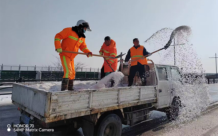 在白雪皚皚的雪地里,身穿橘黃工作服的保潔工人就是最美的點(diǎn)綴,他們頂著風(fēng)雪吹打臉頰,兩人一組、三人一對(duì),配合默契,揮動(dòng)手中鐵銑,用力拋灑融雪鹽斤80多噸,10余車。道路橋粱兩側(cè),人行輔道邊上,公司上下齊心協(xié)力,9名班長在公司統(tǒng)一調(diào)配下,帶領(lǐng)班組人員,人工清除大小橋梁兩側(cè)積雪30多座,人行輔道長達(dá)3000多米長,站臺(tái)、叉路口積雪100多處,為保障恢復(fù)雪后新城環(huán)境整潔而努力工作。大型清掃設(shè)備駕駛員全員齊上陣,安全行車裝運(yùn)融雪鹽斤里程達(dá)200多公里,工作時(shí)長10個(gè)多小時(shí),安全操作鋤雪機(jī)械清理張圩互通引橋,埒子口大橋等路段長達(dá)5000多米長,有力彰顯機(jī)械破冰、除雪強(qiáng)大功能。(楊波)