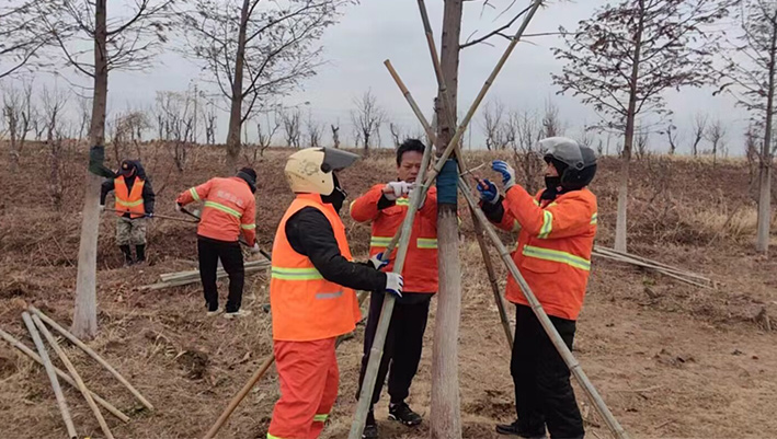 昨日,空氣溫度驟降,伴隨著大雨。綠化分公司立即啟動應(yīng)急預(yù)案,各班組強(qiáng)化轄區(qū)內(nèi)喬木加固支撐防止樹木倒伏、加挖排水溝保證排澇處理等措施。應(yīng)急維護(hù)工作全體人員24小時值待命,確保第一時間將險情排除。